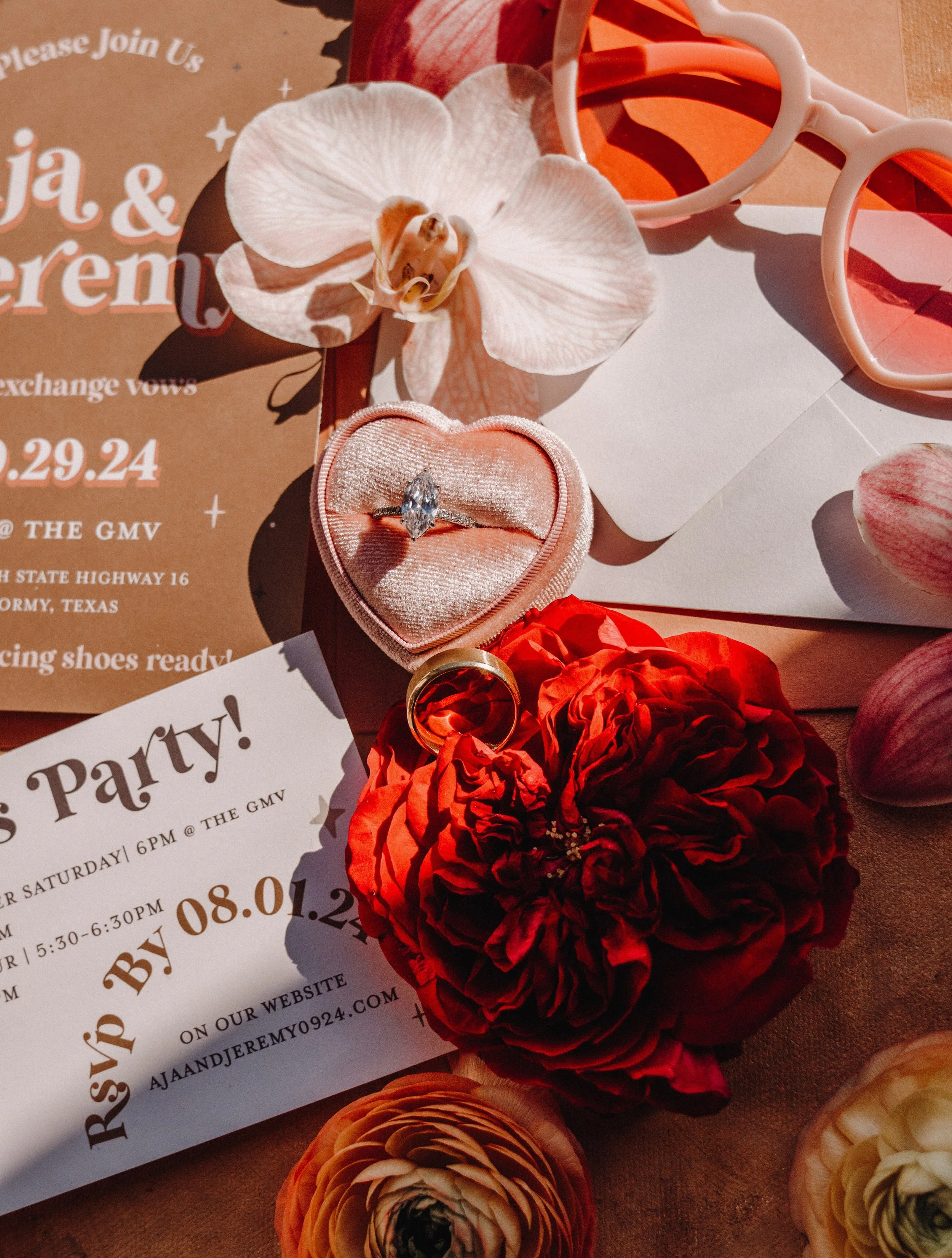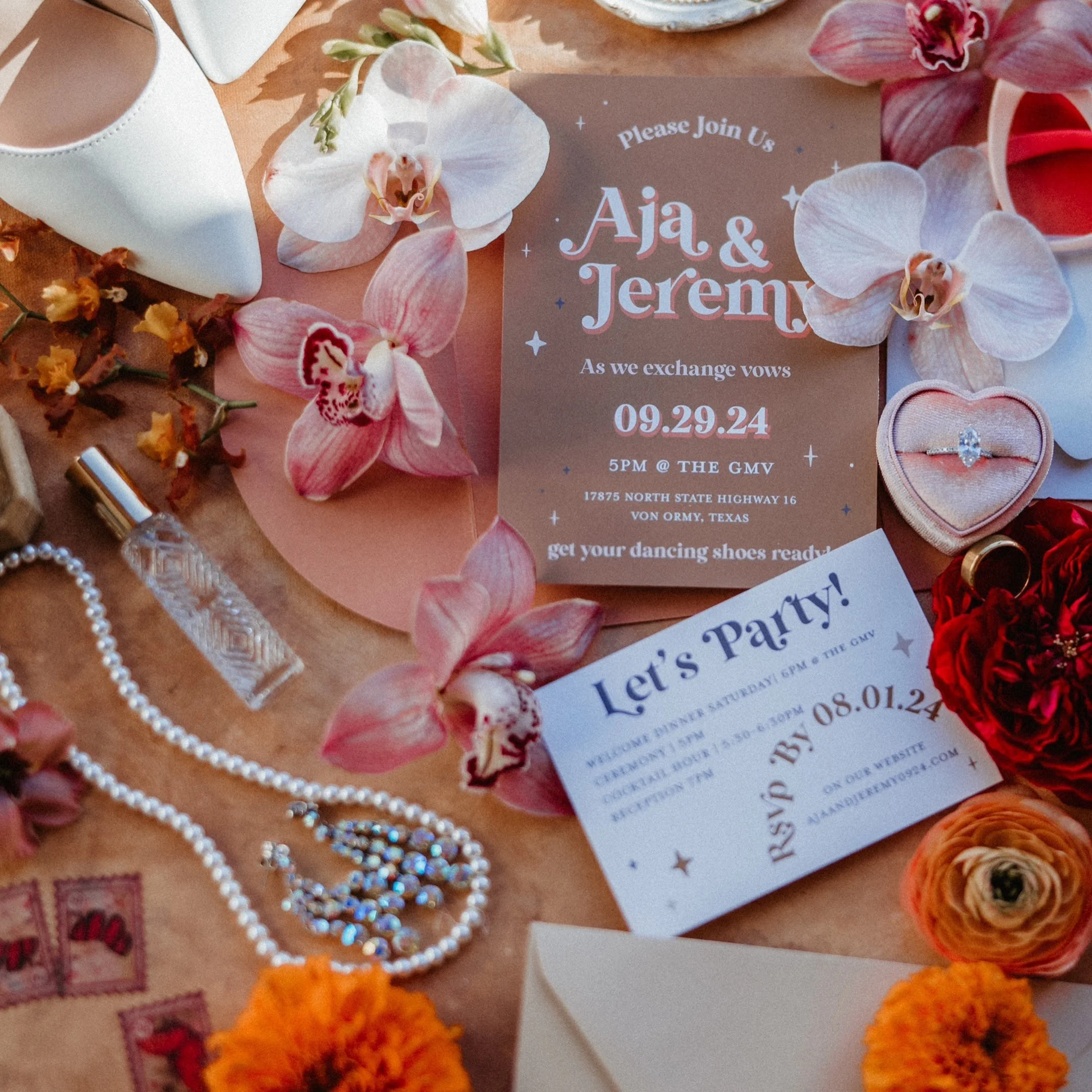 4 Piece Suite Includes: -Main Invitation -RSVP Card with Details (online RSVP) -Cream Guest + Rsvp Envelopes