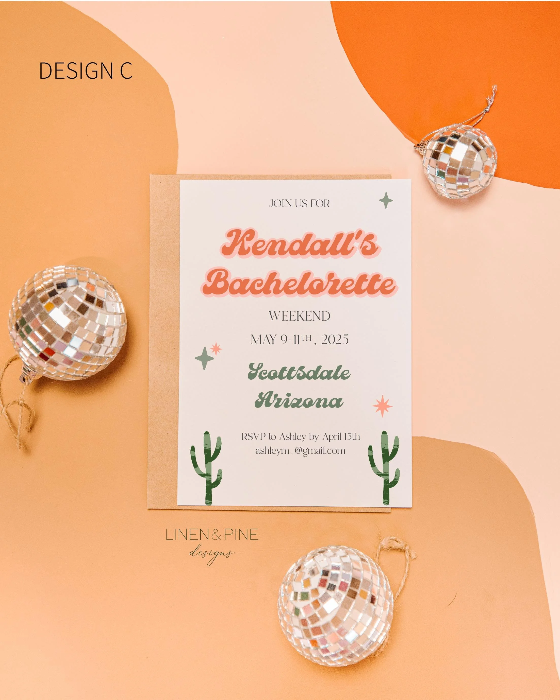 Customize with the bride to be's name and choose from THREE design options (see photos)