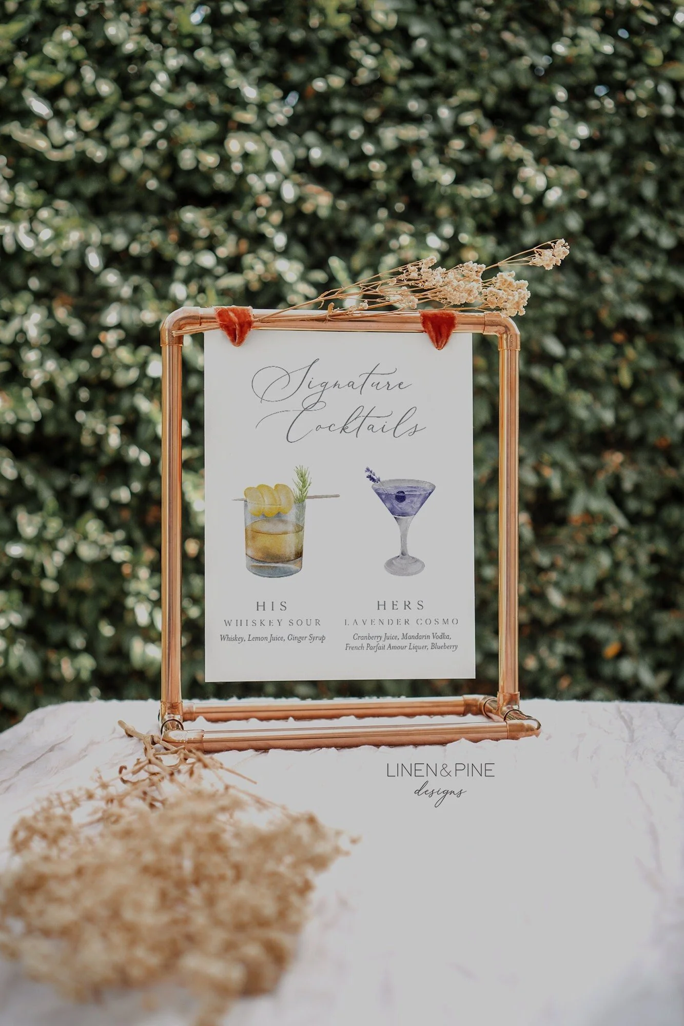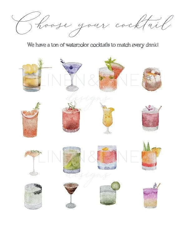 Custom 8x10" Cocktail Sign with your choice of drink names and ingredients