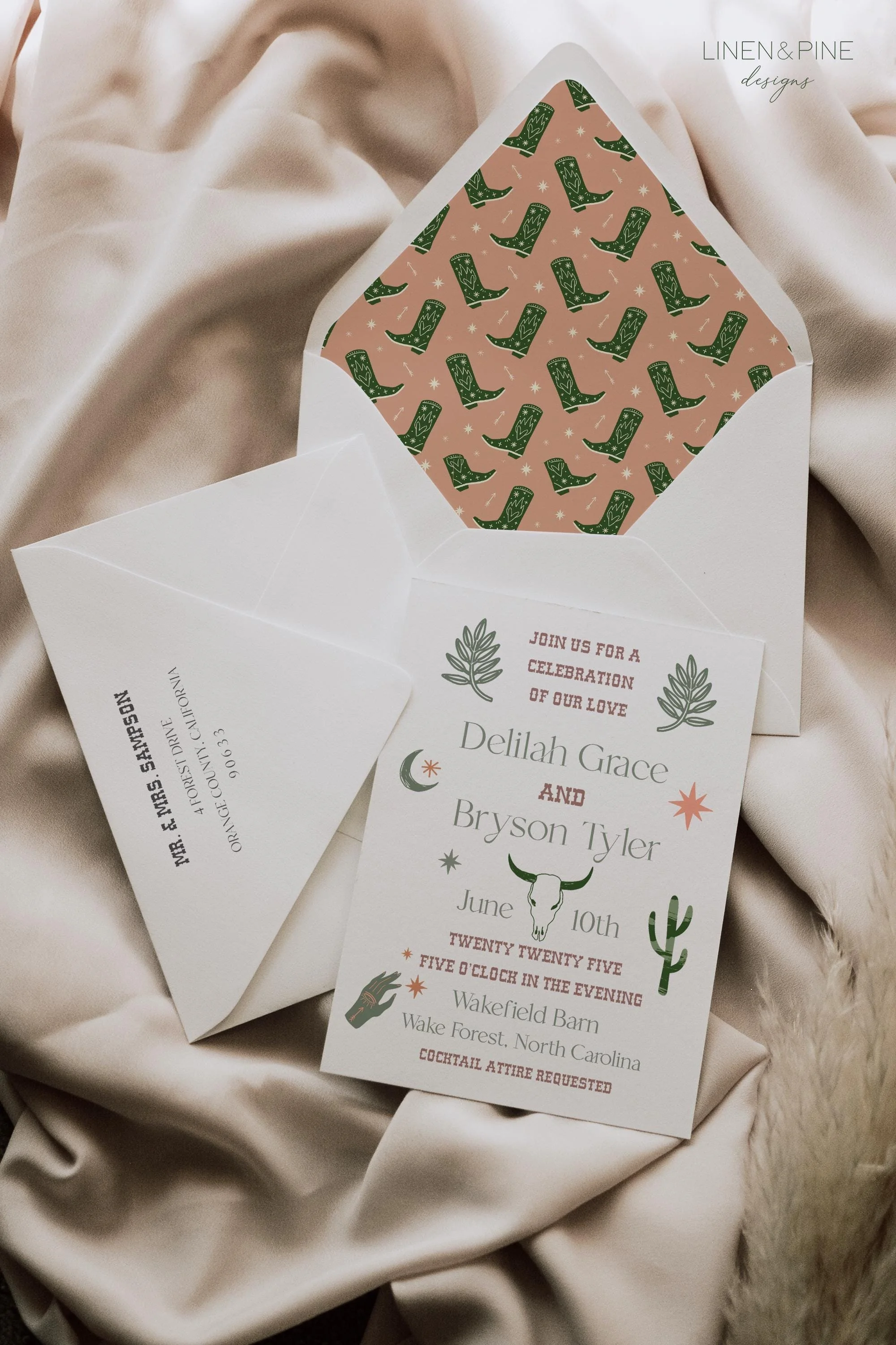 -Guest Euro-Flap Envelopes (choose your color) + cowboy envelope liner